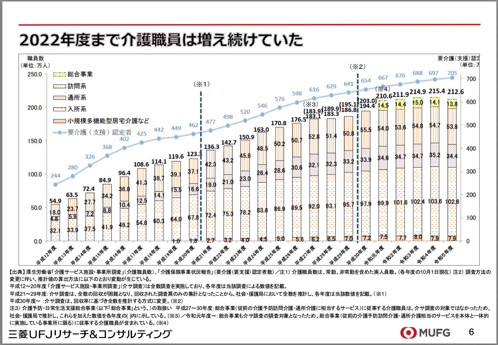 実は、介護職員の数は2022年まで、一度も減ることなく増え続けてきました。