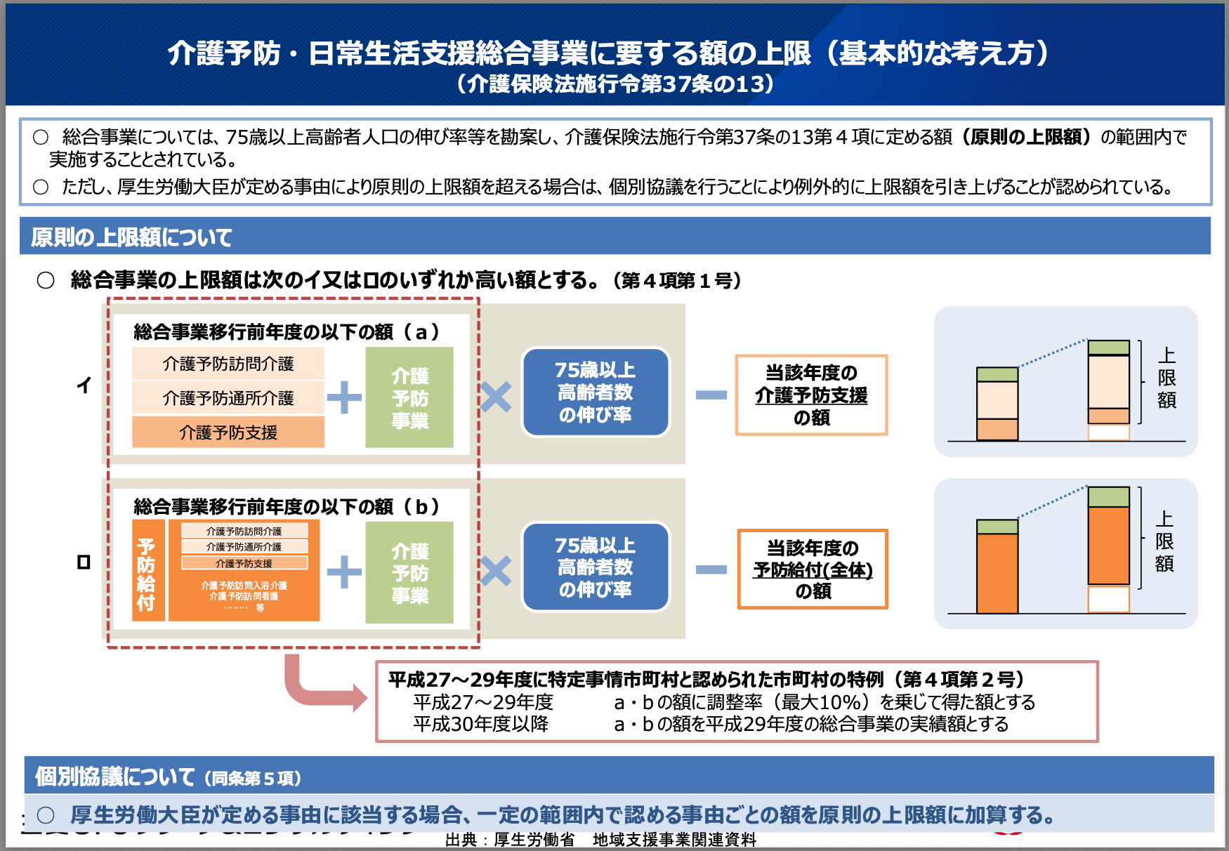 上限額を超えた場合の個別協議の条件が、これまでの実施要綱から政令・告示へと規定が明確化されました。