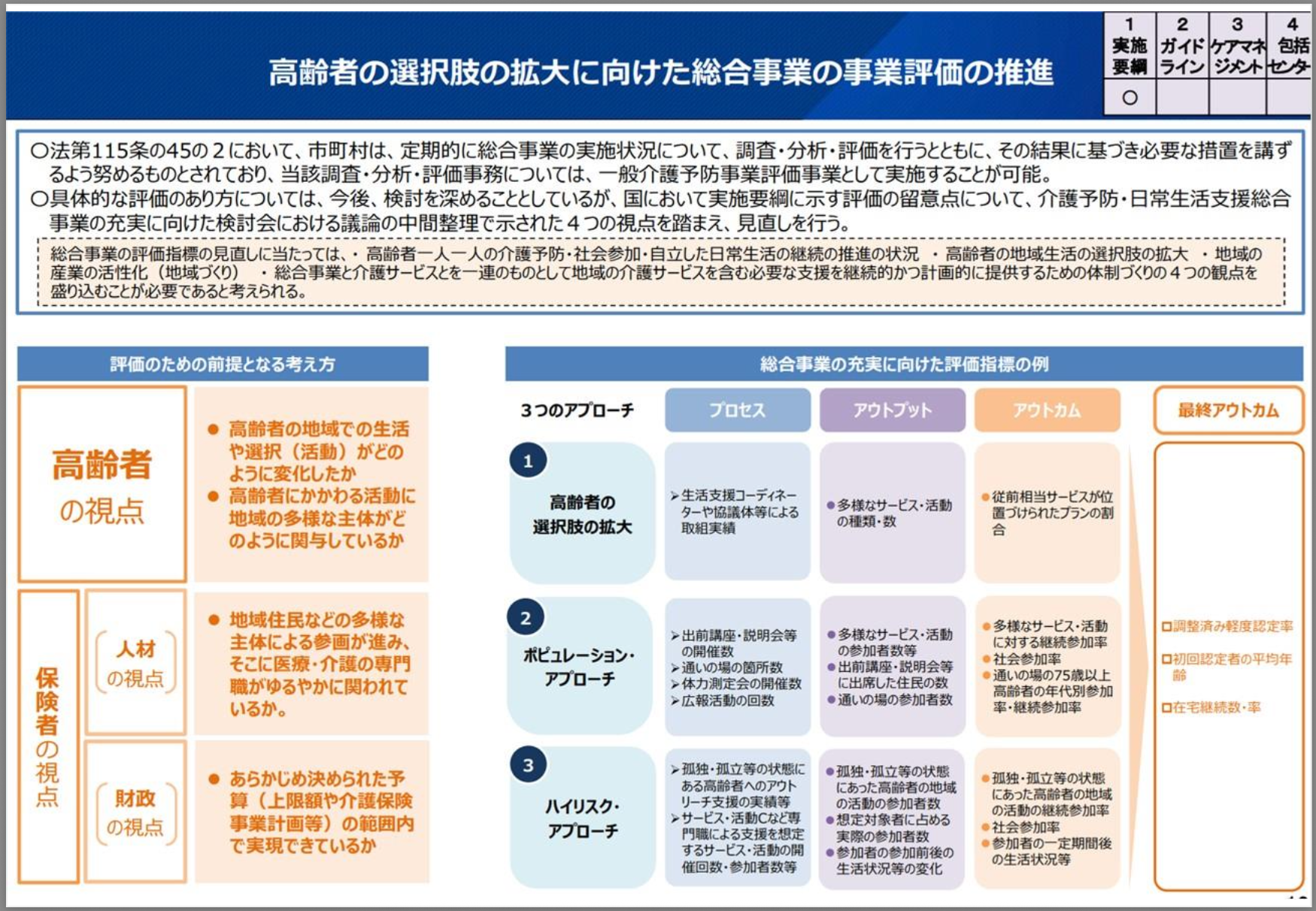 では、具体的に総合事業をどう評価し、改善していけばよいのでしょうか。