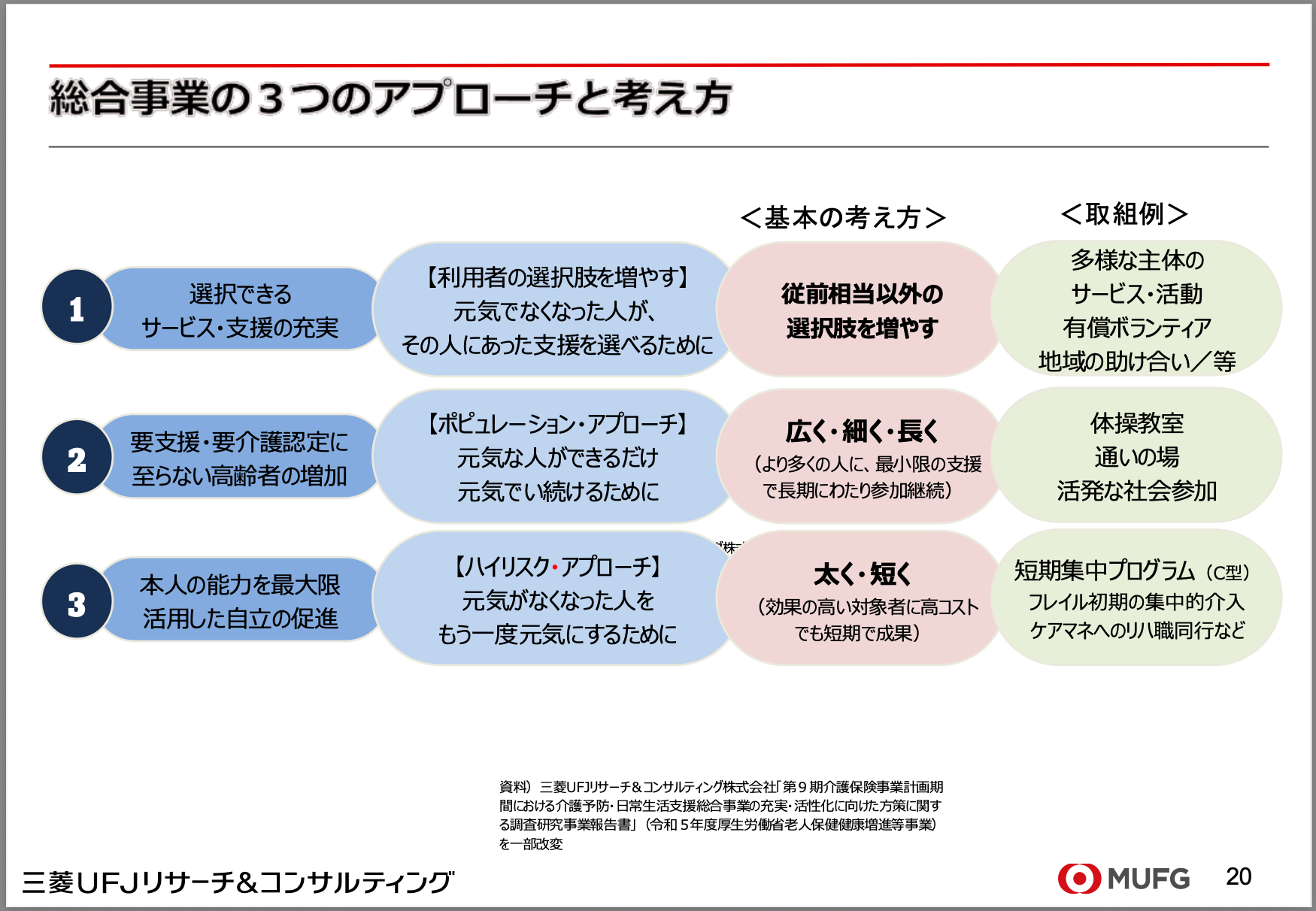 三菱UFJリサーチ&コンサルティング株式会社「第9期介護保険事業計画期間における介護予防・日常生活支援総合事業の充実・活性化に向けた方策に関する調査研究事業報告書」