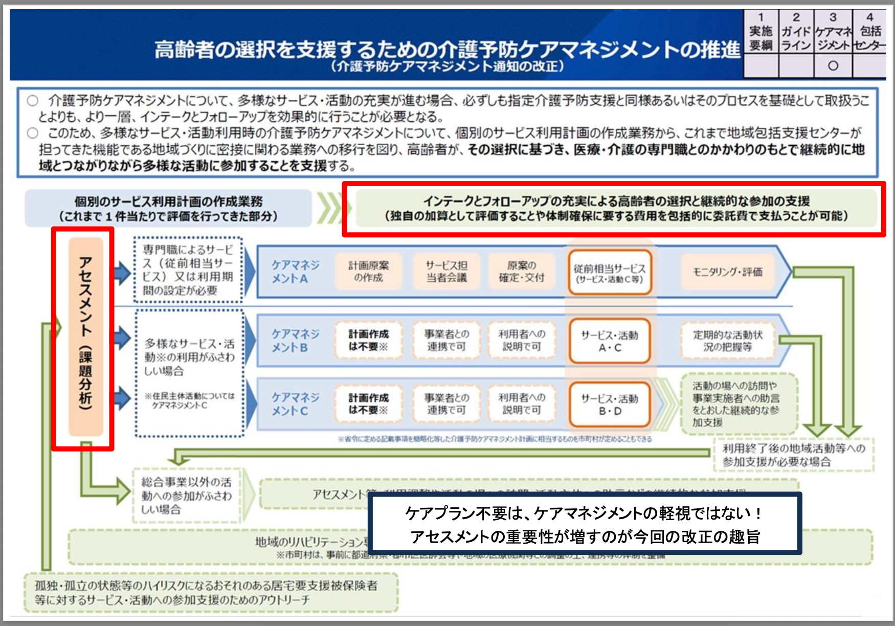 これは、ケアマネジメントの軽視では決してありません。むしろ、誰にでも同じプランを作るのではなく、一人ひとりの状態を丁寧に見極めるアセスメントの重要性が格段に増すことを意味しています。