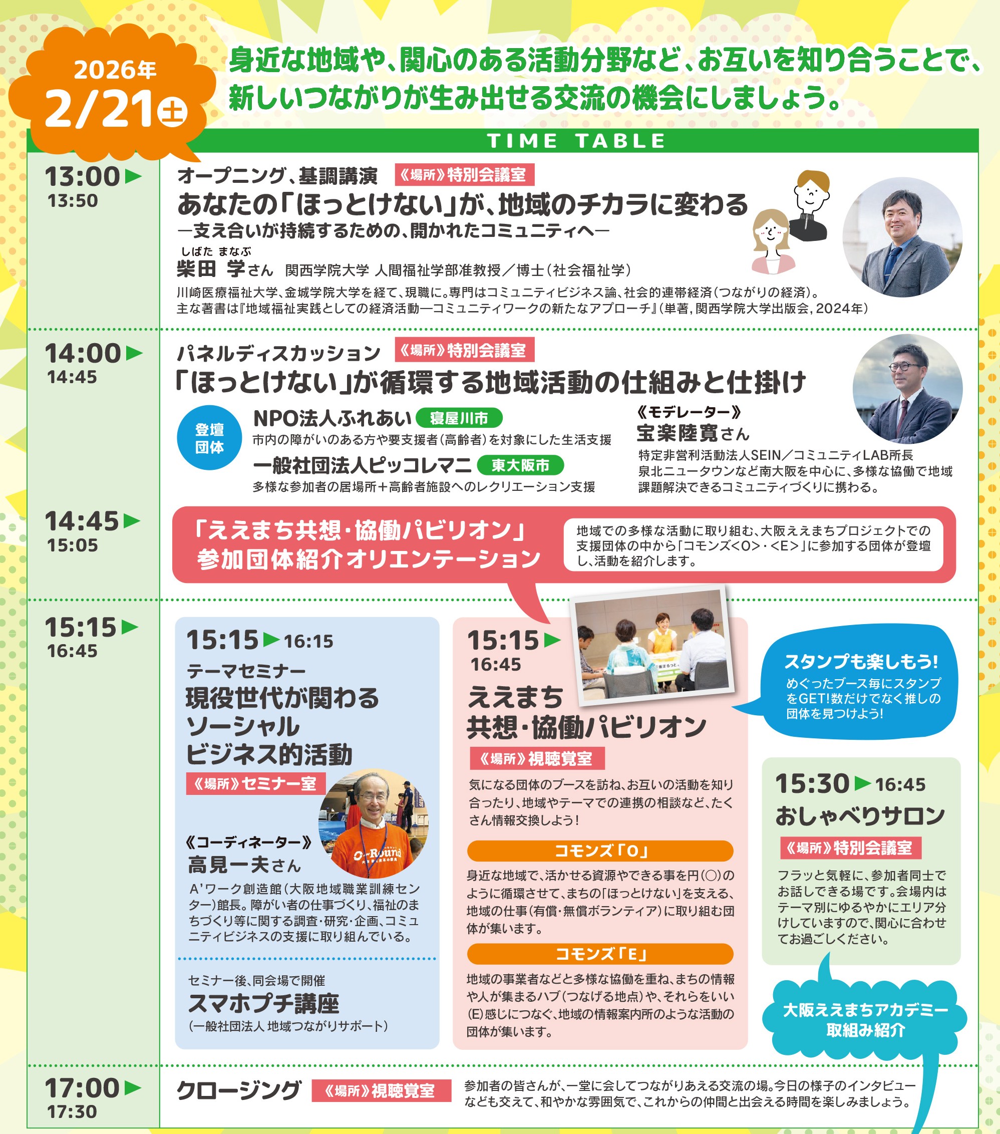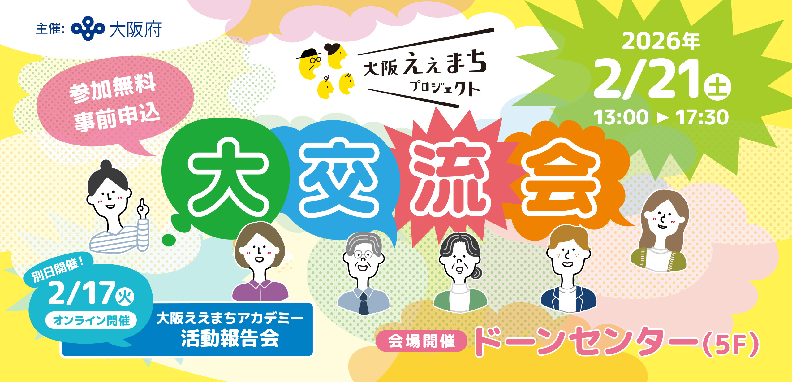 2月21日 (土) 大阪ええまちプロジェクト大交流会【会場開催】13:00‐17:30